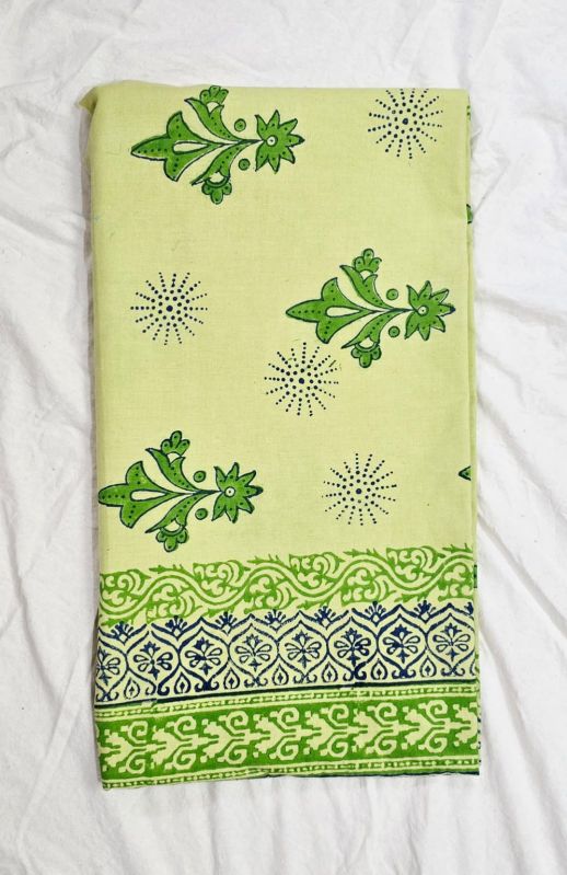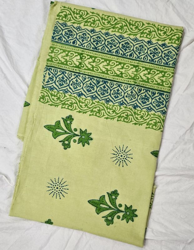Olive Green Hand Block Printed Poly Cotton Kurta Fabric