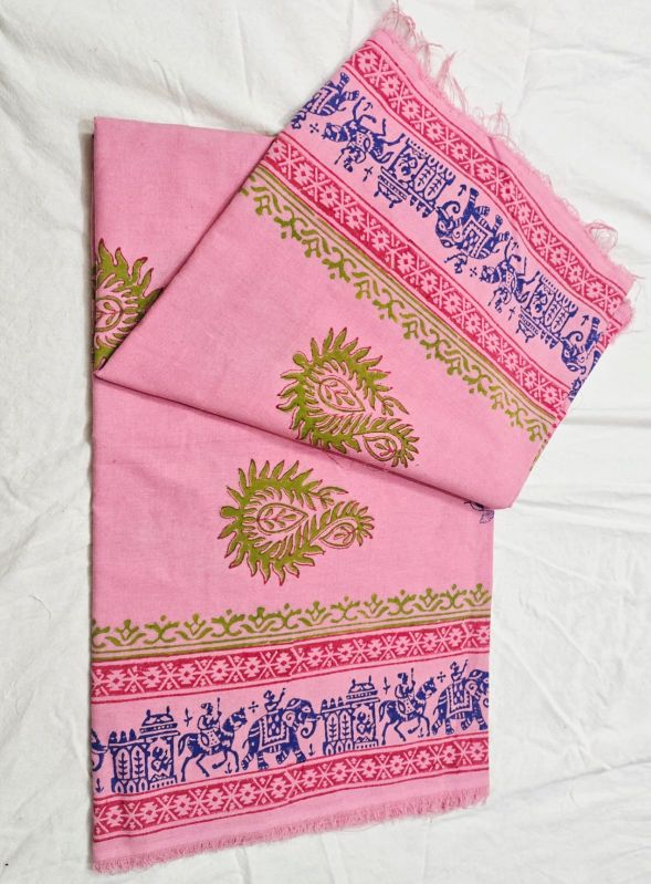 Rose Pink Hand Block Printed Poly Cotton Pink Kurta Fabric